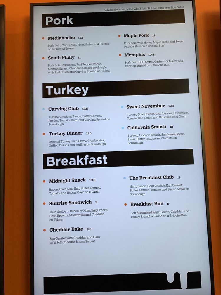 turkey breast, cheddar, thick cut bacon, lettuce, pickles, tomato, ham and our carving spread on sliced sourdough