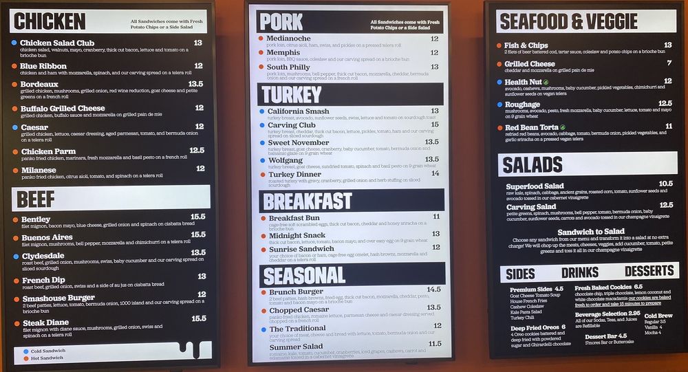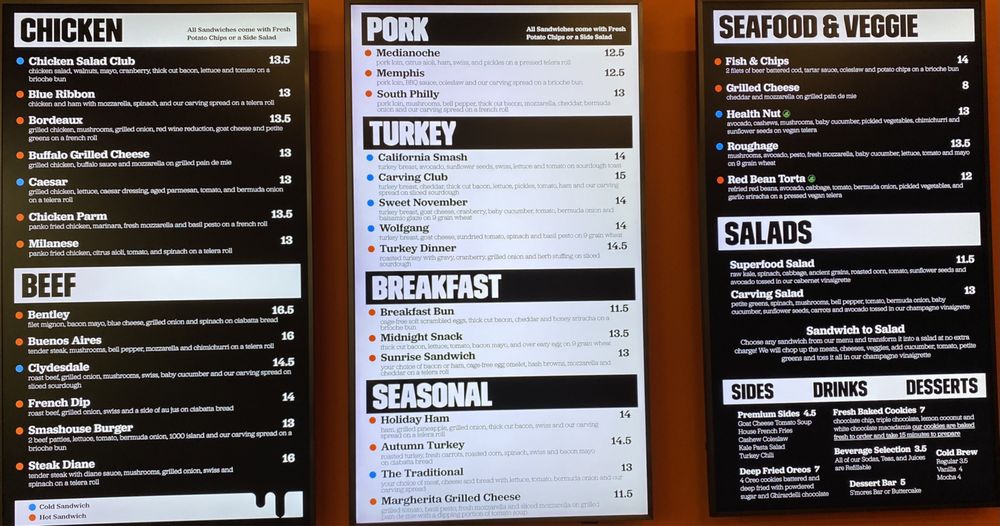 The Carving Board offers a variety of sandwiches and menu options in a casual and trendy setting in Koreatown, Los Angeles. With a focus on quality ingredients and generous portions, customers rave about the flavorful dishes like the Traditional and Turkey Pesto Panini. The creativity shines through dishes like the Mac & Cheeseburger and California Smash Turkey sandwich. Reviews highlight the friendly service, delicious soups, and the option to turn sandwiches into salads. The atmosphere is welcoming, and the establishment offers amenities such as free parking, reservations, and Wi-Fi. For a satisfying meal with unique twists on classic favorites, The Carving Board is a must-visit spot for sandwich lovers in the area.